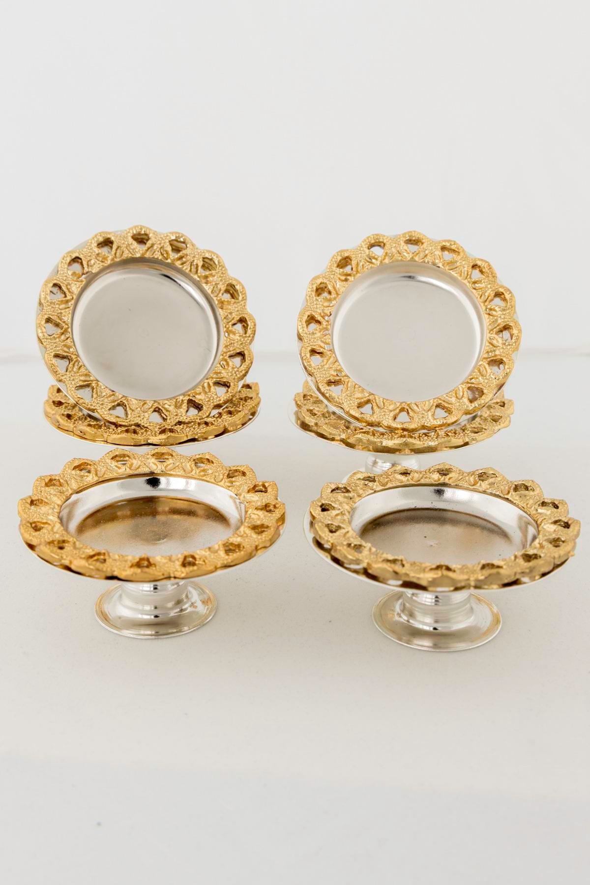 6’lı Kahve Yanı Ayaklı Lokumluk & Şekerlik Seti – Gold Zamak Kenar, Gümüş Renk Gövde (Ø6 cm, 2.5 cm) - Yaren Style